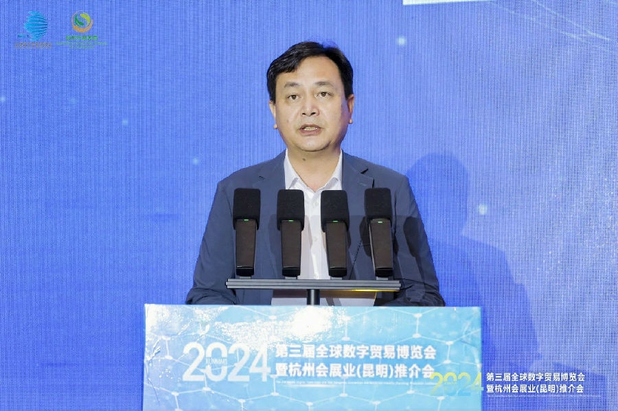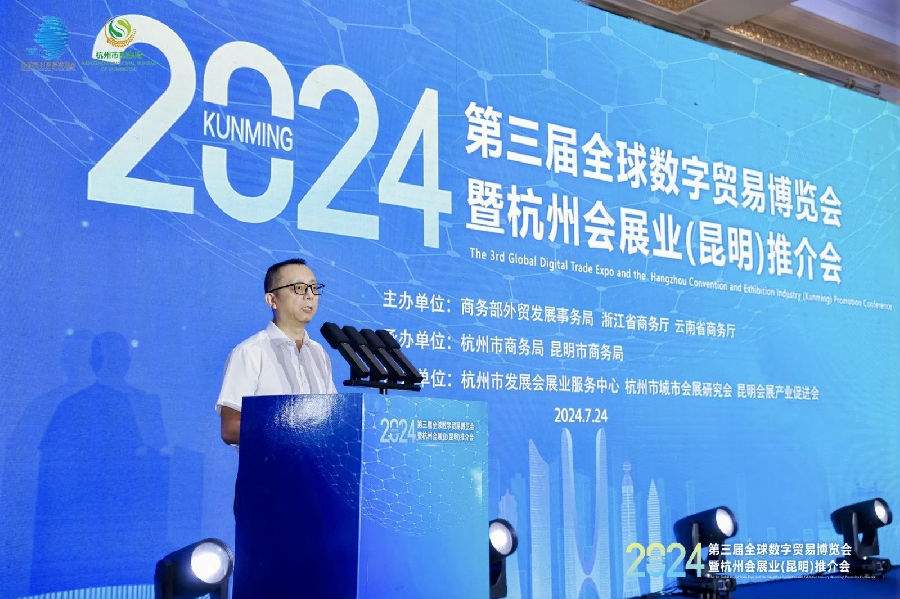 第三届全球数字贸易博览会暨2024杭州会展业(昆明)推介会于7月24日举行。本次大会由商务部外贸发展事务局、浙江省商务厅及云南省商务厅联合主办;杭州市商务局、昆明市商务局承办;杭州市发展会展业服务中心,杭州市城市会展研究会、昆明会展产业促进会协办。汇聚了来自政府、企业、行业协会的众多精英,共同探索数字贸易的未来趋势,推动两地会展业的深度交流与融合发展。