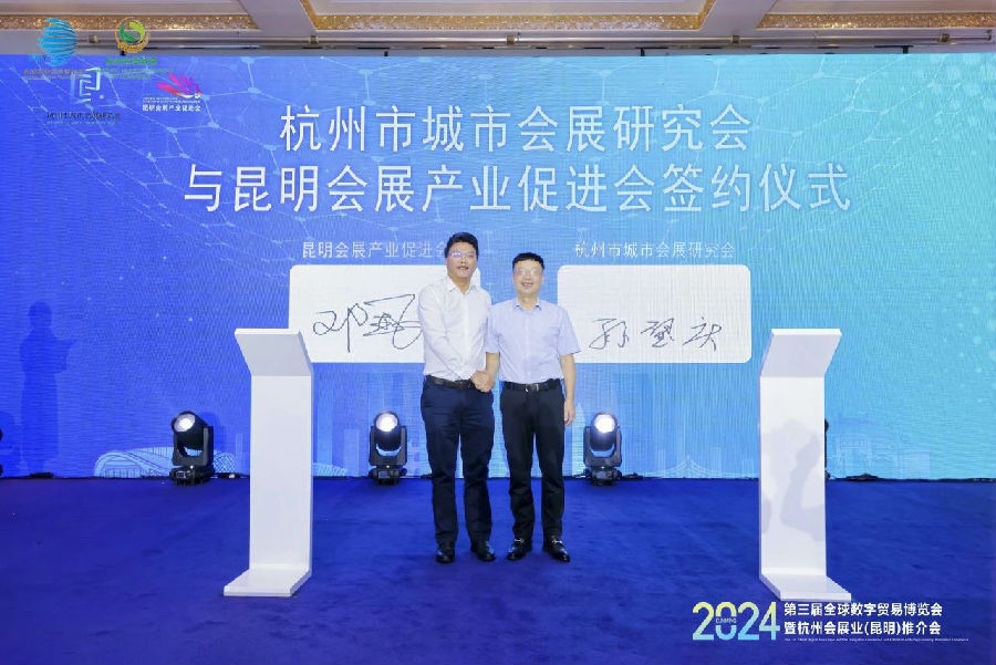 推介会上,杭州市城市会展研究会会长孙璧庆与昆明会展产业促进会会长邓亚飞代表各自社团,成功签约,标志着双方在资源共享、市场共拓等方面将展开更紧密的合作,同时为两地会展业的协同发展翻开了新的一页。